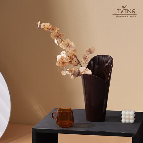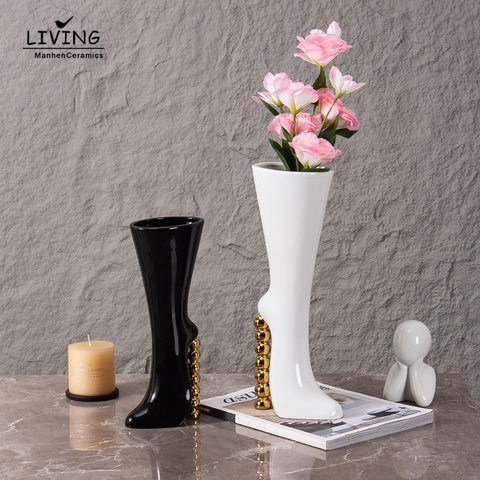 Florero de bota de cerámica minimalista moderno, decoración del hogar, florero de mesa de flores de porcelana para decoración para sala de estar