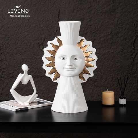 Decoración moderna para el hogar, jarrón blanco abstracto para hombre, exquisito jarrón de cerámica creativo con adorno de flores