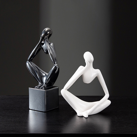 Accesorios de decoración del hogar de lujo minimalista, adornos artesanales de cerámica, estatua de pensador, decoración de arte abstracto, adornos de escritorio
