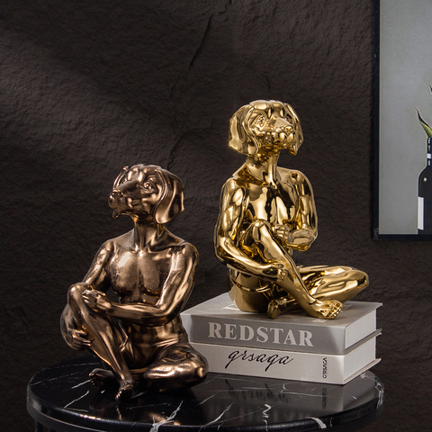 Arte abstracto de nuevo diseño, decoración de escritorio para el hogar y la Oficina, escultura de figura humana dorada, artesanías de cerámica, adornos de escritorio