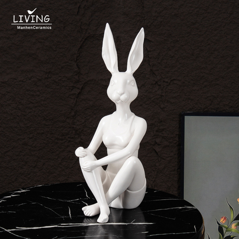 Estatua de conejo decoración del hogar y accesorios de oficina escultura de Animal abstracto decoración artística ornamento