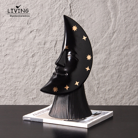 Artesanías populares de Navidad, decoraciones para el hogar, adornos de mesa, escultura de cara de Luna tallada a mano, artesanía de cerámica para decoración del hogar